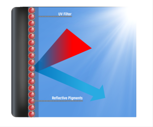 The lacquer acts as a filter which breaks down UV concentration, whilst solar-reflecting pigments minimise heat absorption.